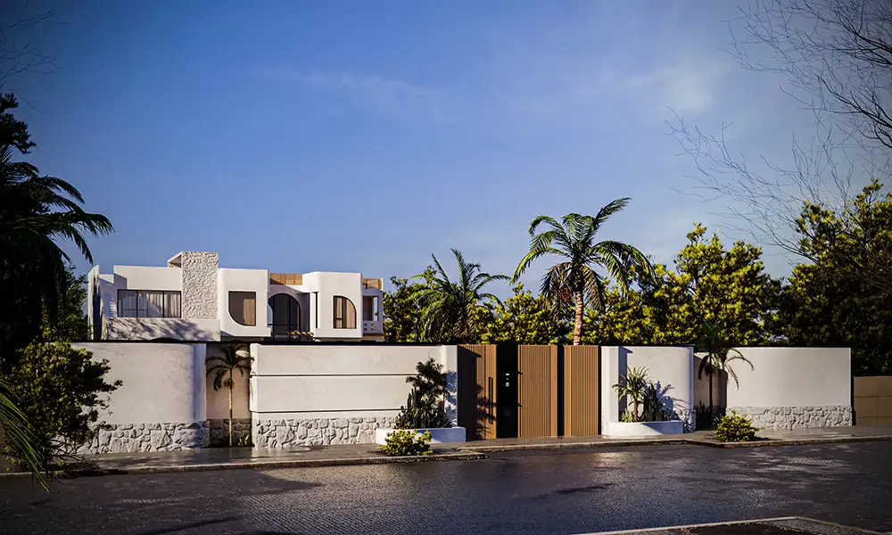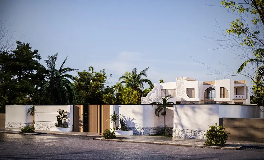 This villa harmonizes Mediterranean character with contemporary sophistication, expressed through white stucco surfaces, soft curves, and expansive arched openings.