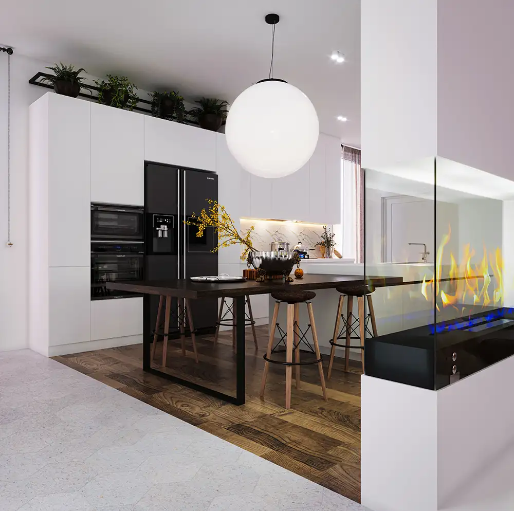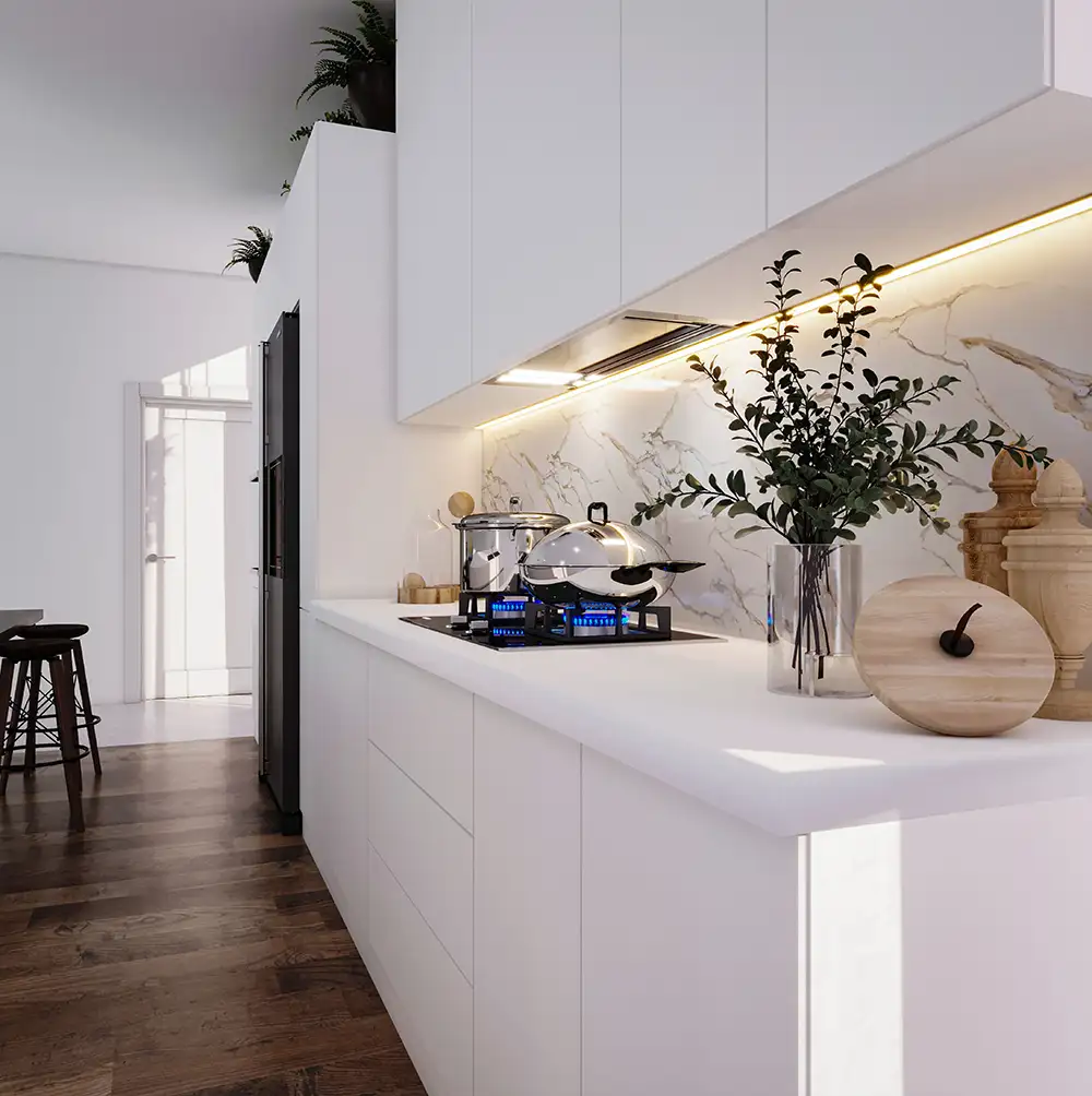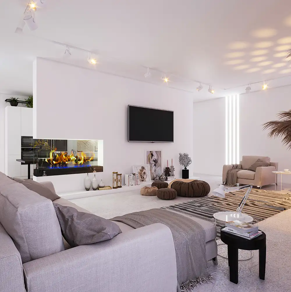 The objective of minimalism is to create appealing and purposeful spaces while maintaining simplicity by utilizing minimal resources. The designer achieves spaciousness by eliminating unnecessary elements.