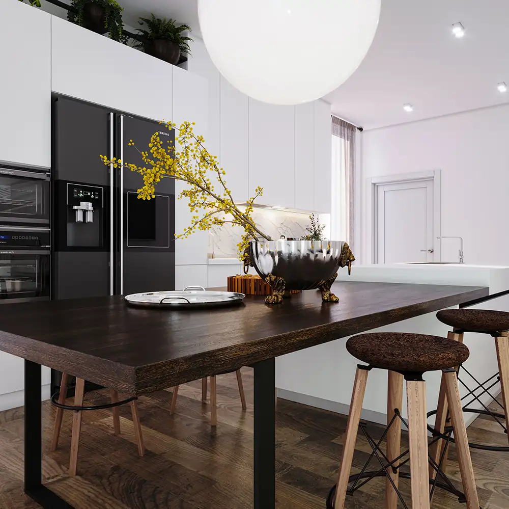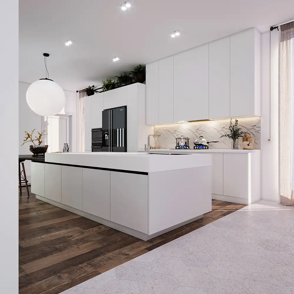In this style, simplicity is evident in all aspects of the building, including form, space, materials, details, and color. The design emphasizes clean, airy, and bright spaces with uncomplicated wall coverings and minimal details.